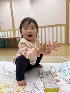 「上手にかけたね」と声をかけると「パチパチ~👏」と一緒に拍手をして喜んだり✨