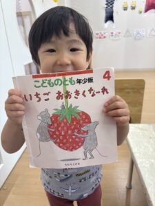 お部屋に合ったイチゴの絵本を「これと一緒!」と見せに来てくれました。👀