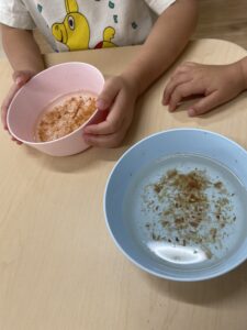 「何だろう(好奇心)」「やってみよう(意欲)」「どうしてだろう、どうなっているんだろう(探求心)」が育つよう「丁寧に、待つ保育」を心掛け、子どもの「生きる力」を育んでいきたいと思います。